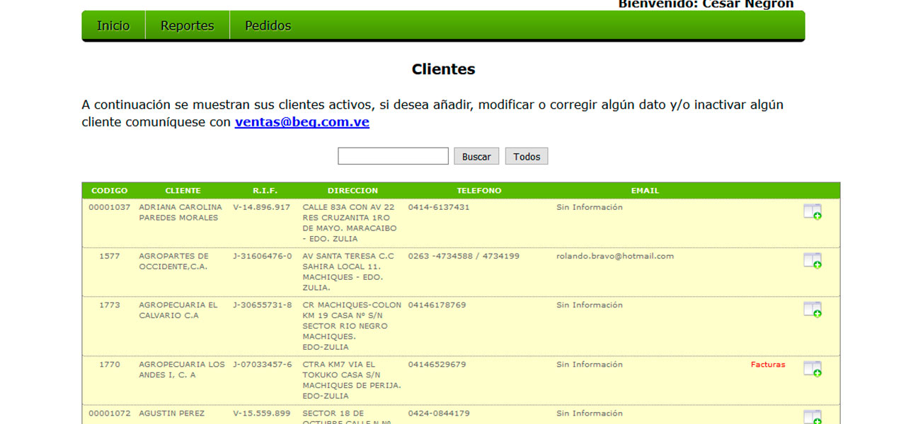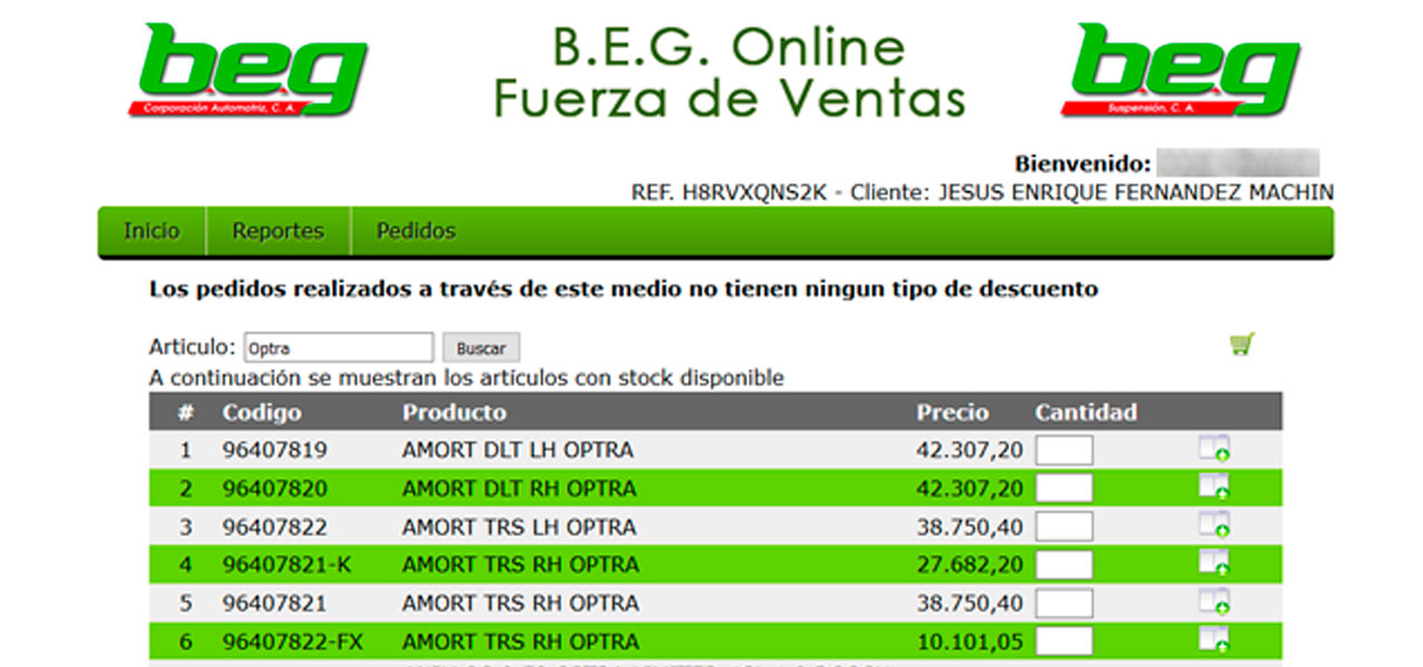 Sistema de pedidos en línea exclusivo para los representantes de ventas, interconectado con el sistema administrativo de la empresa para la actualización de los inventarios y los pedidos realizados en tiempo real.