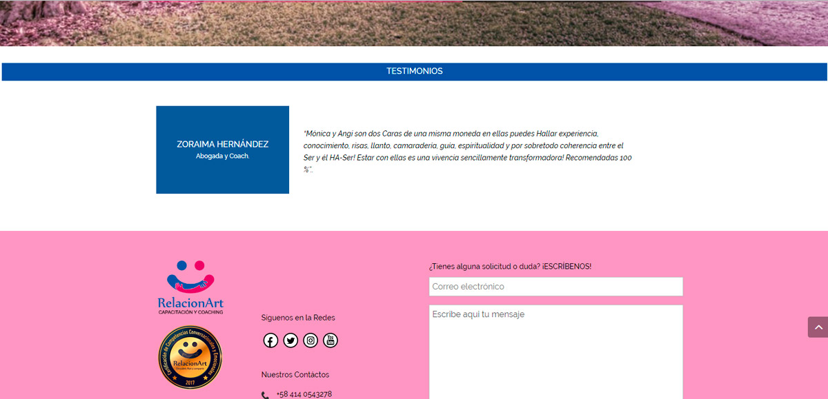 A través de la agencia de marketing y producción de eventos Escenarios Creativos, fuimos los encargados de crear un sitio web para Relacionart. Usamos el conocido CMS WordPress adaptando la plantilla al diseño suministrado por la agencia.